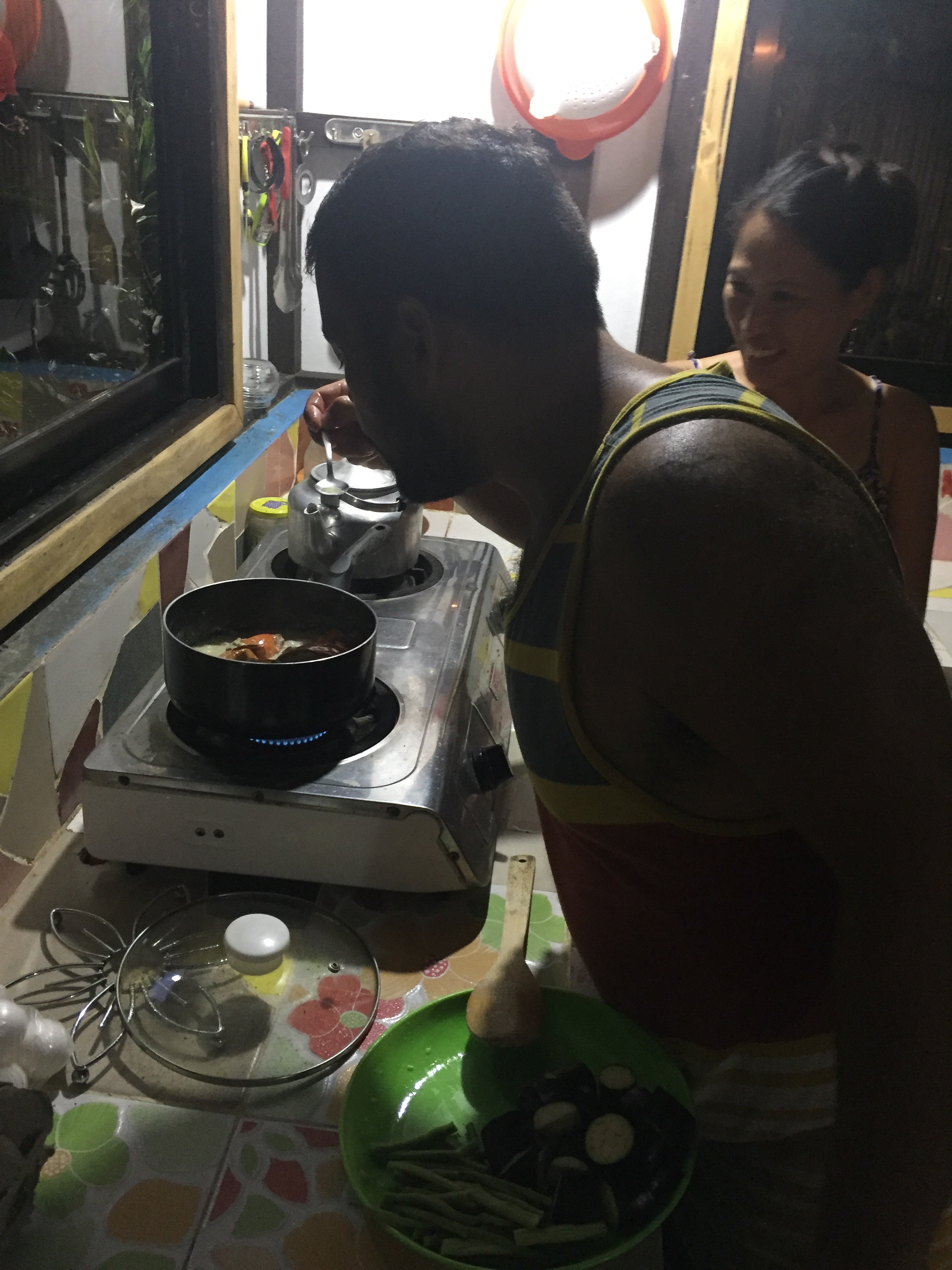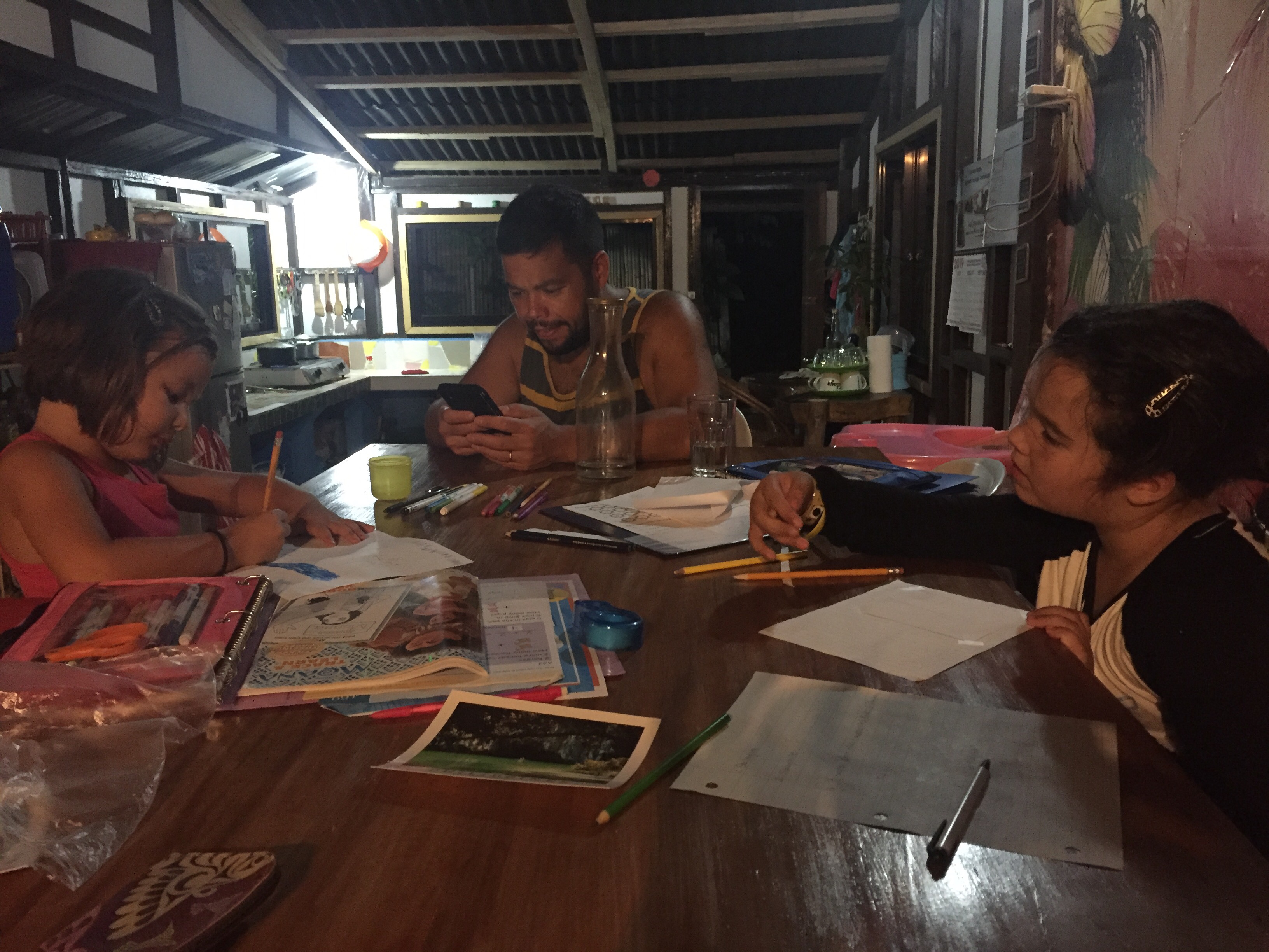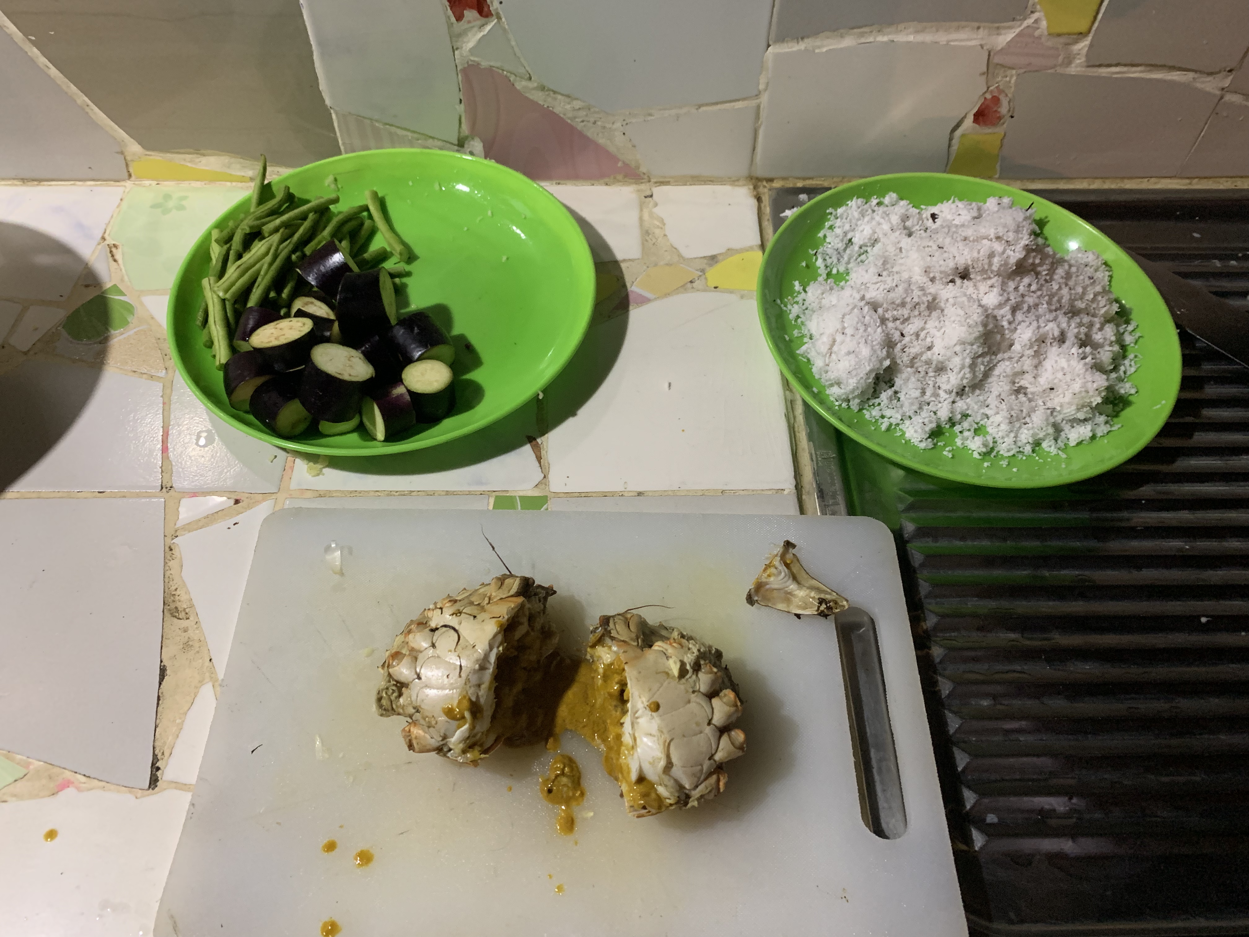 Another great benefit to staying where we are is our host’s stepdad is a fisherman and caught fresh crab in the mangrove lined waters behind the house. And then sold us one for dinner! To top that, Odette, our host, helped Chad cook it AND they provided a coconut picked from a backyard tree and ground that minute for the milk marinade. So flipping good!! And who knew the girls would be so enamored with the crab. Chad and I didn’t get nearly our half!