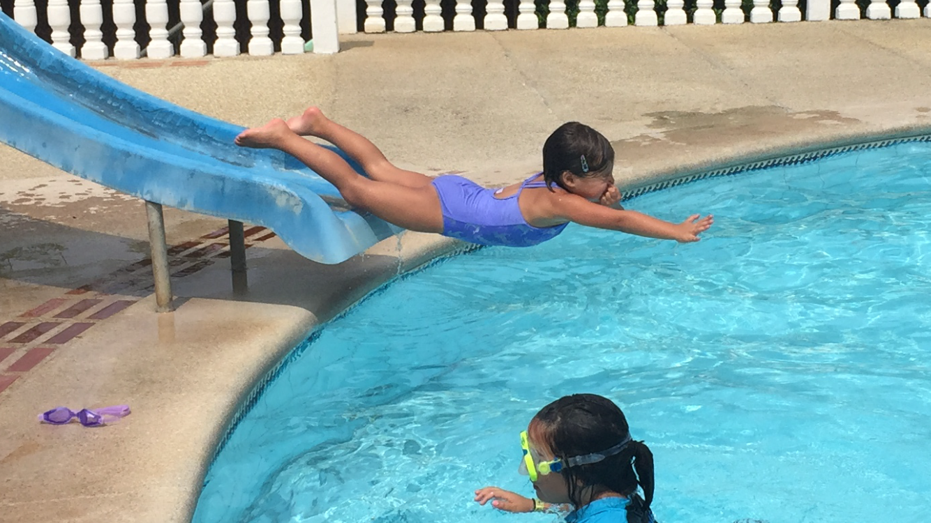I think we might be the luckiest folk around. Yes we are our in the boonies a bit, but there happens to be a hotel down the road less than a five minute walk…with a pool!