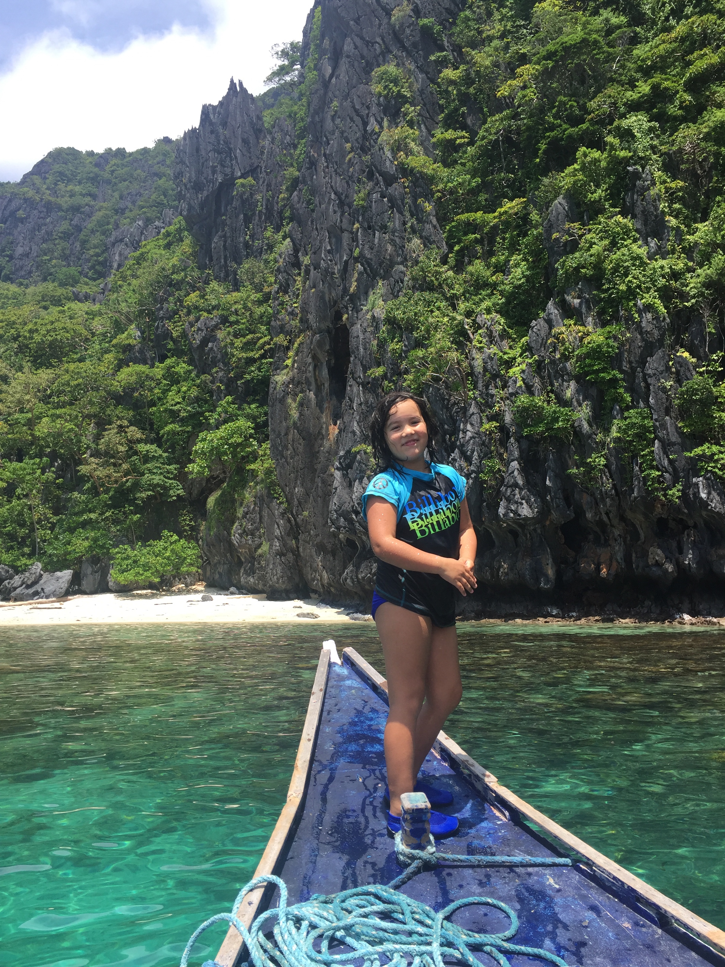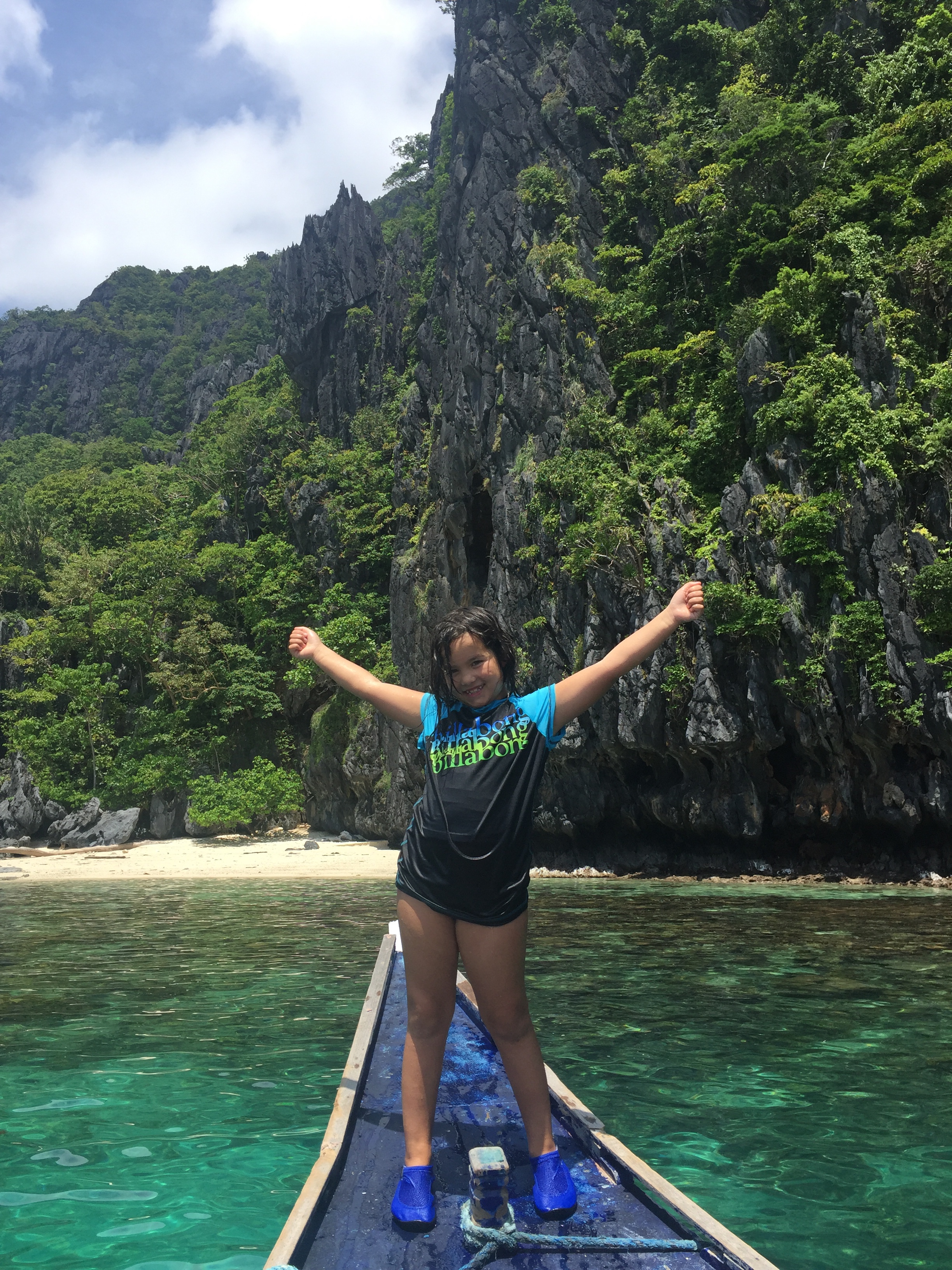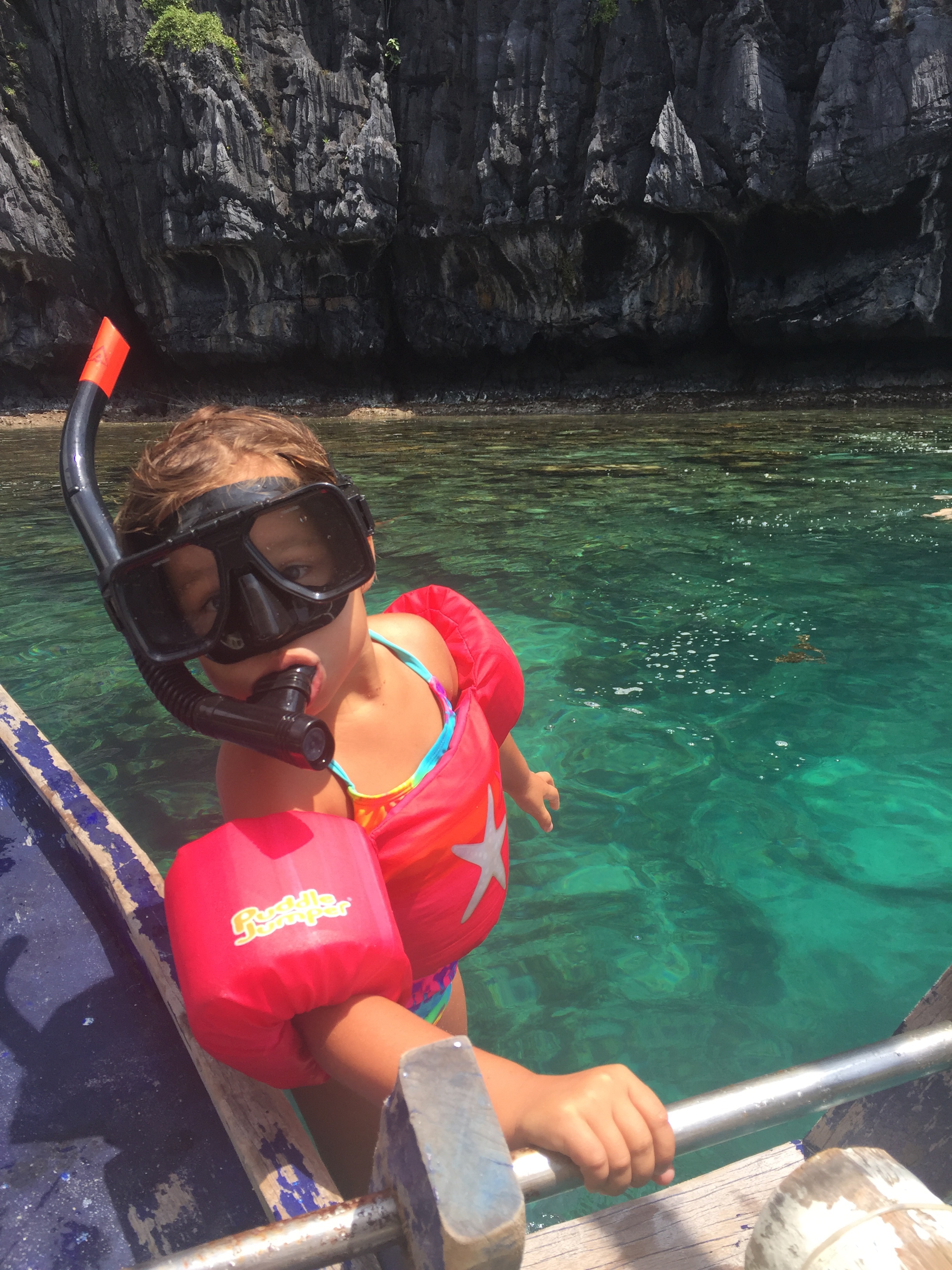 We went to five separate islands, but really you didn’t need such variety, how could you compare one spectacular and picturesque white sand, striated cliffs, green jungle and indescribable blue green water to another? We appreciated it all though. And REALLY appreciated the underwater world that seems truly otherworldly. And did I mention how proud I am of these rock star girls? Who are snorkeling and swimming all day and even when they’re a bit tired of the off and on, and restrictions on what they can and can’t do, are being the best at rolling with it and enjoying so much! Whenever anyone asks how they like somehing, the trip, their current activity or the Philippines general, the most common response: Great! 🙂 that’s me beaming.