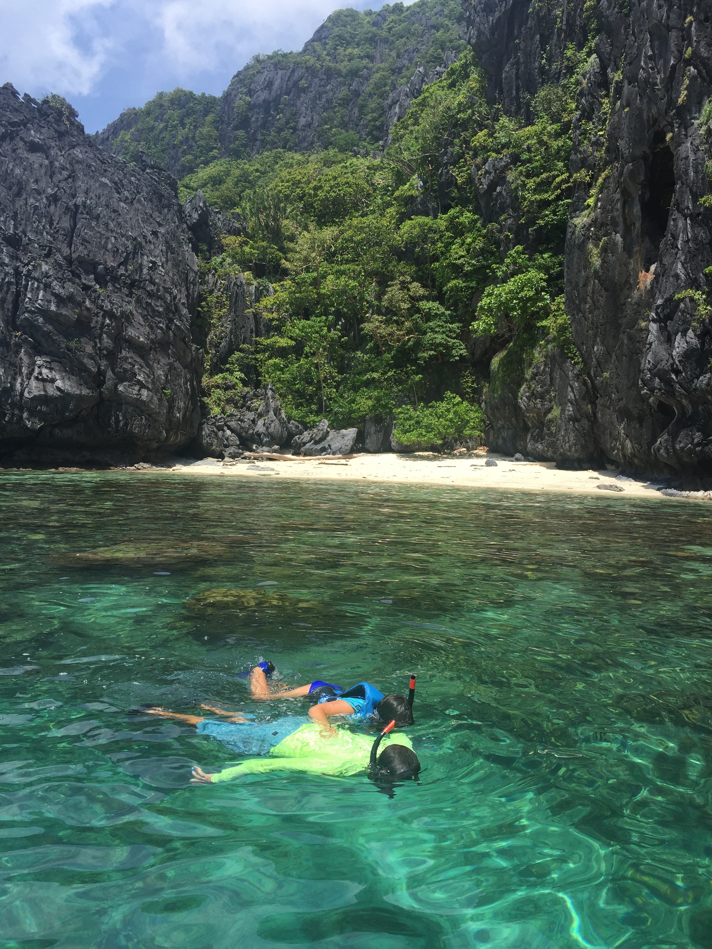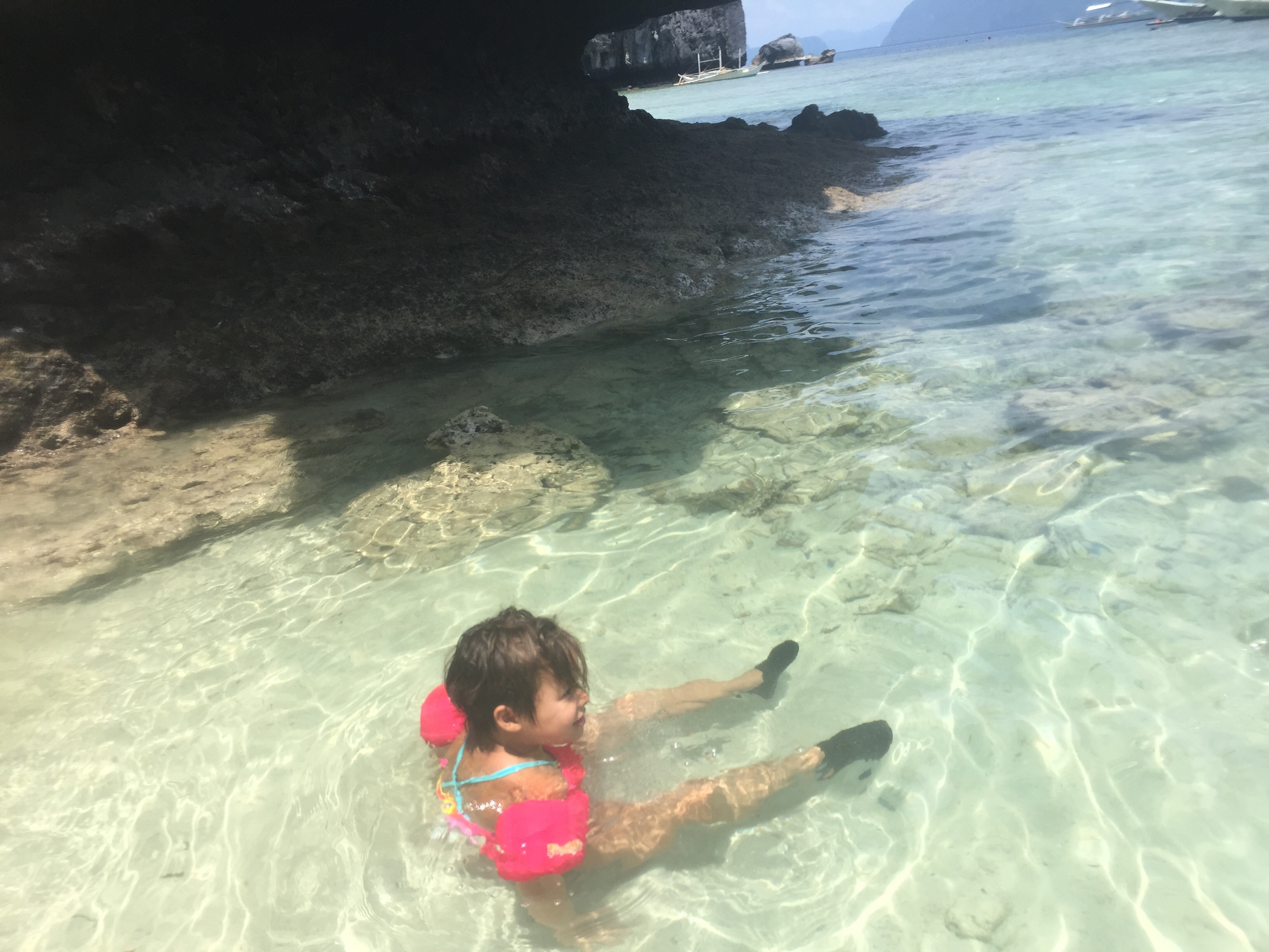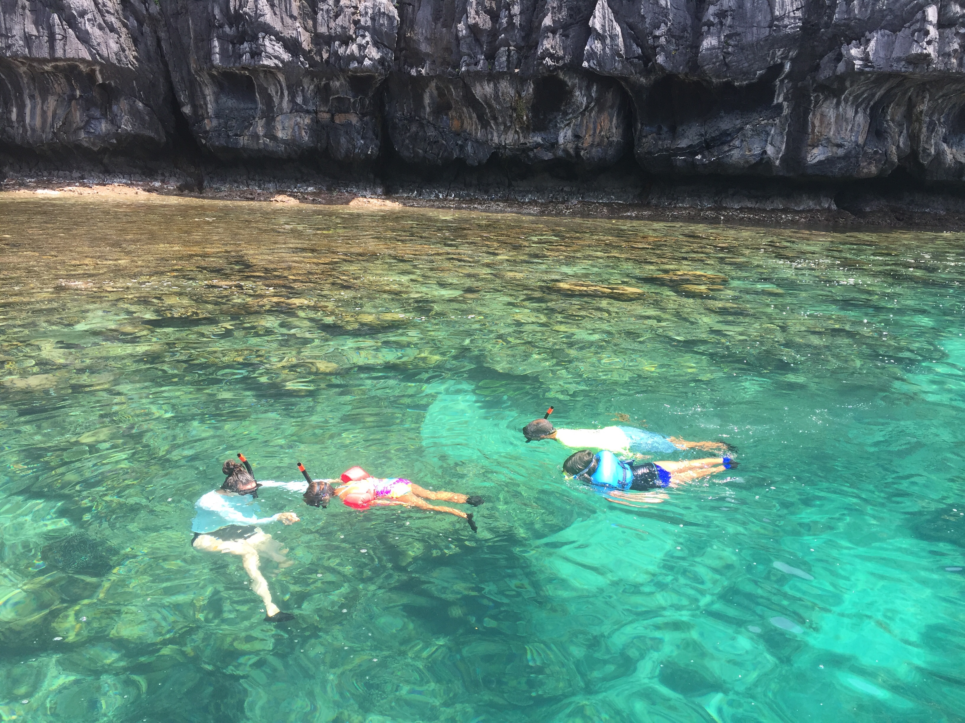 We went to five separate islands, but really you didn’t need such variety, how could you compare one spectacular and picturesque white sand, striated cliffs, green jungle and indescribable blue green water to another? We appreciated it all though. And REALLY appreciated the underwater world that seems truly otherworldly. And did I mention how proud I am of these rock star girls? Who are snorkeling and swimming all day and even when they’re a bit tired of the off and on, and restrictions on what they can and can’t do, are being the best at rolling with it and enjoying so much! Whenever anyone asks how they like somehing, the trip, their current activity or the Philippines general, the most common response: Great! 🙂 that’s me beaming.