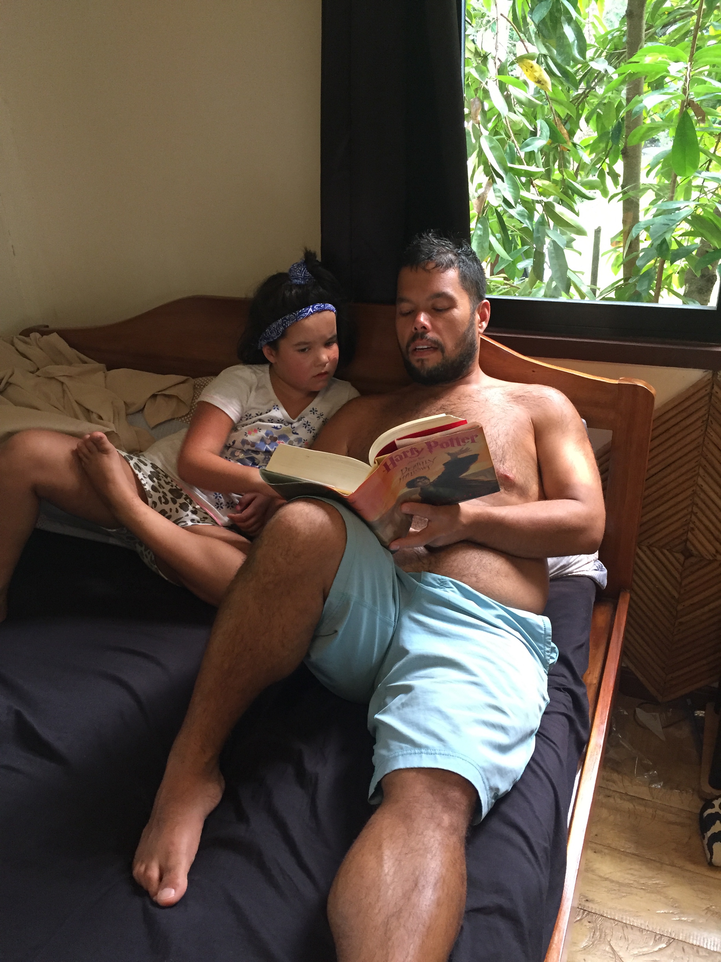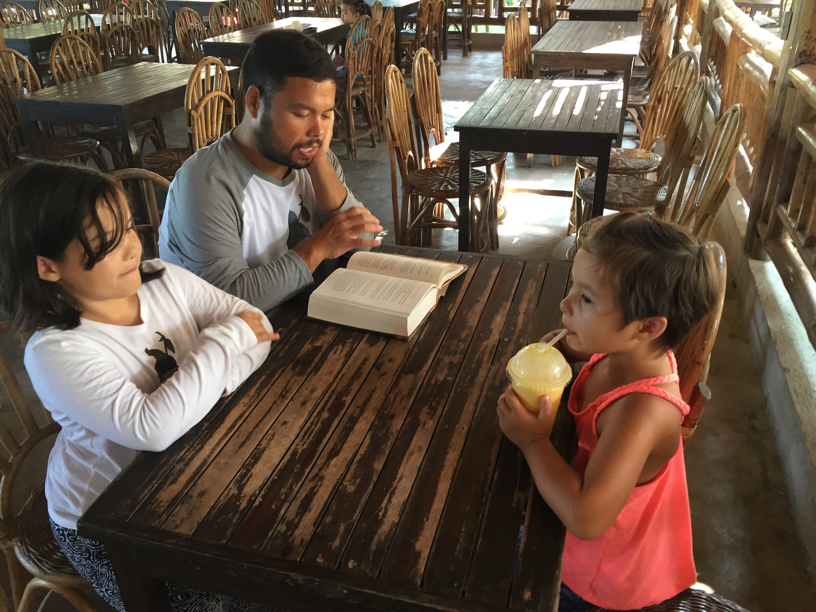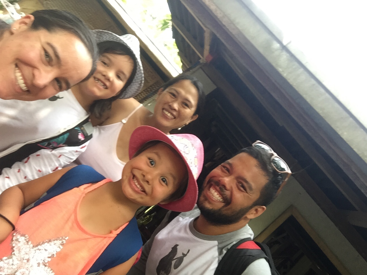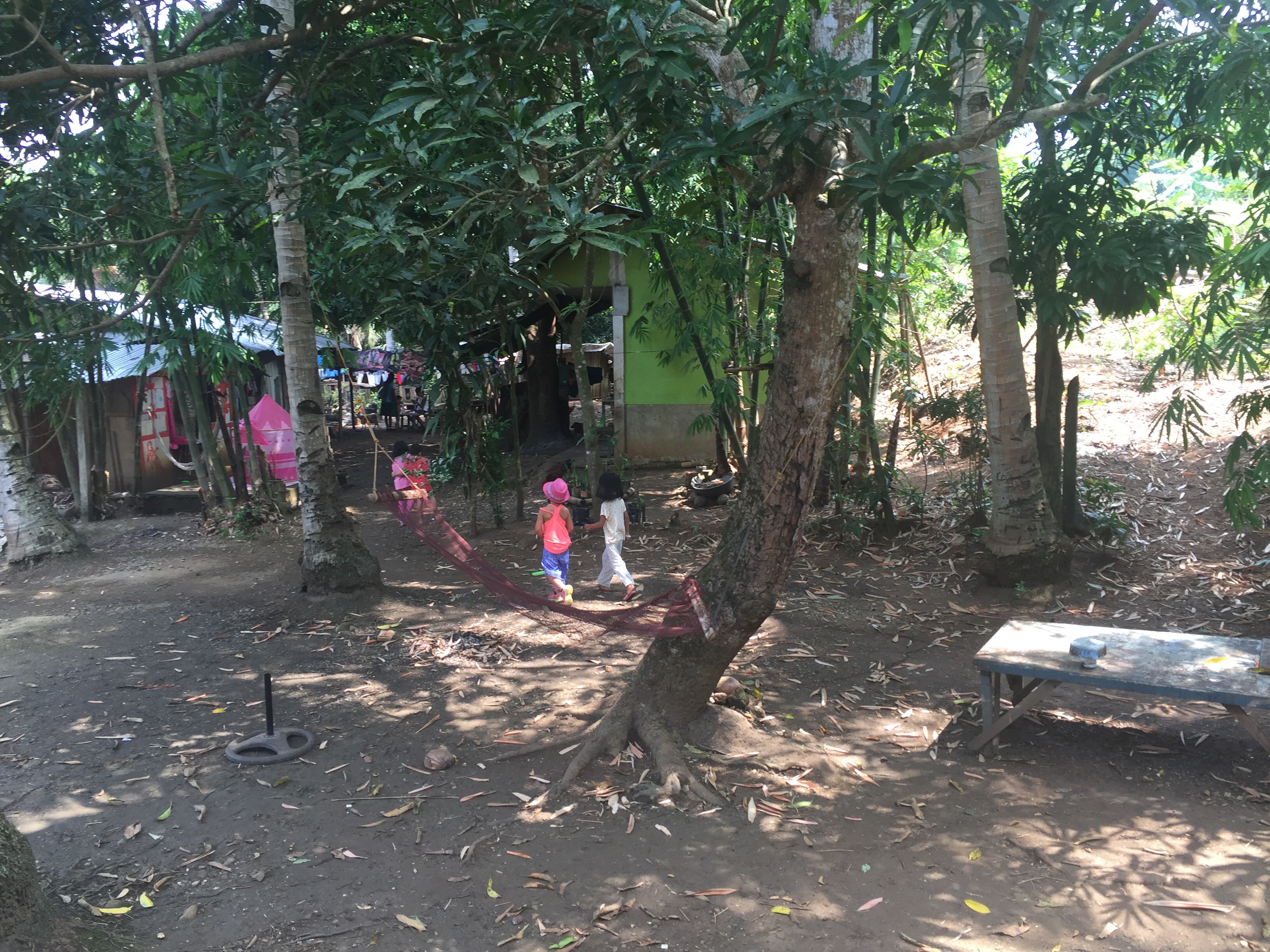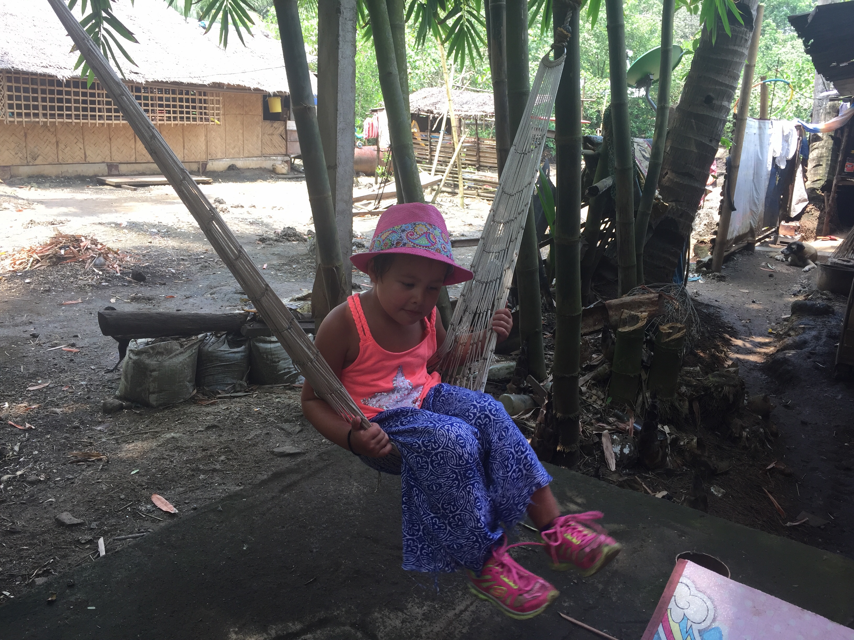 But we’re off to the tourist paradise (we’re told) of El Nido. We were to catch a 10am van and hauled our things up the mud trail to the Basketball court used as the neighborhood landmark for pickups and dropoffs, but after calling, no no it will be 11am because we’ll be last to picked up. So back to odette’s (sorry Odette) for a little more HP time for Chad and Alys and some play outside for Marion.