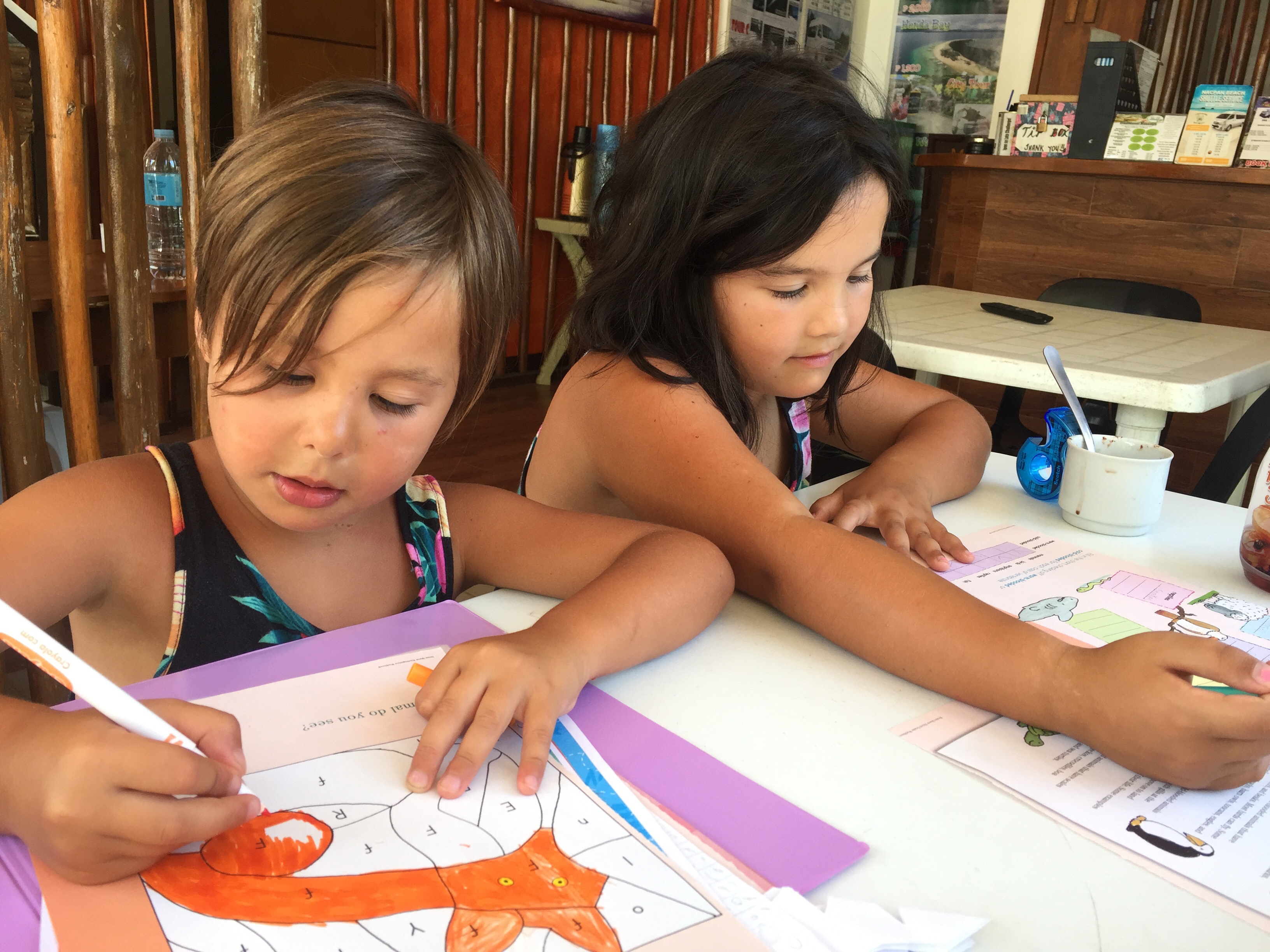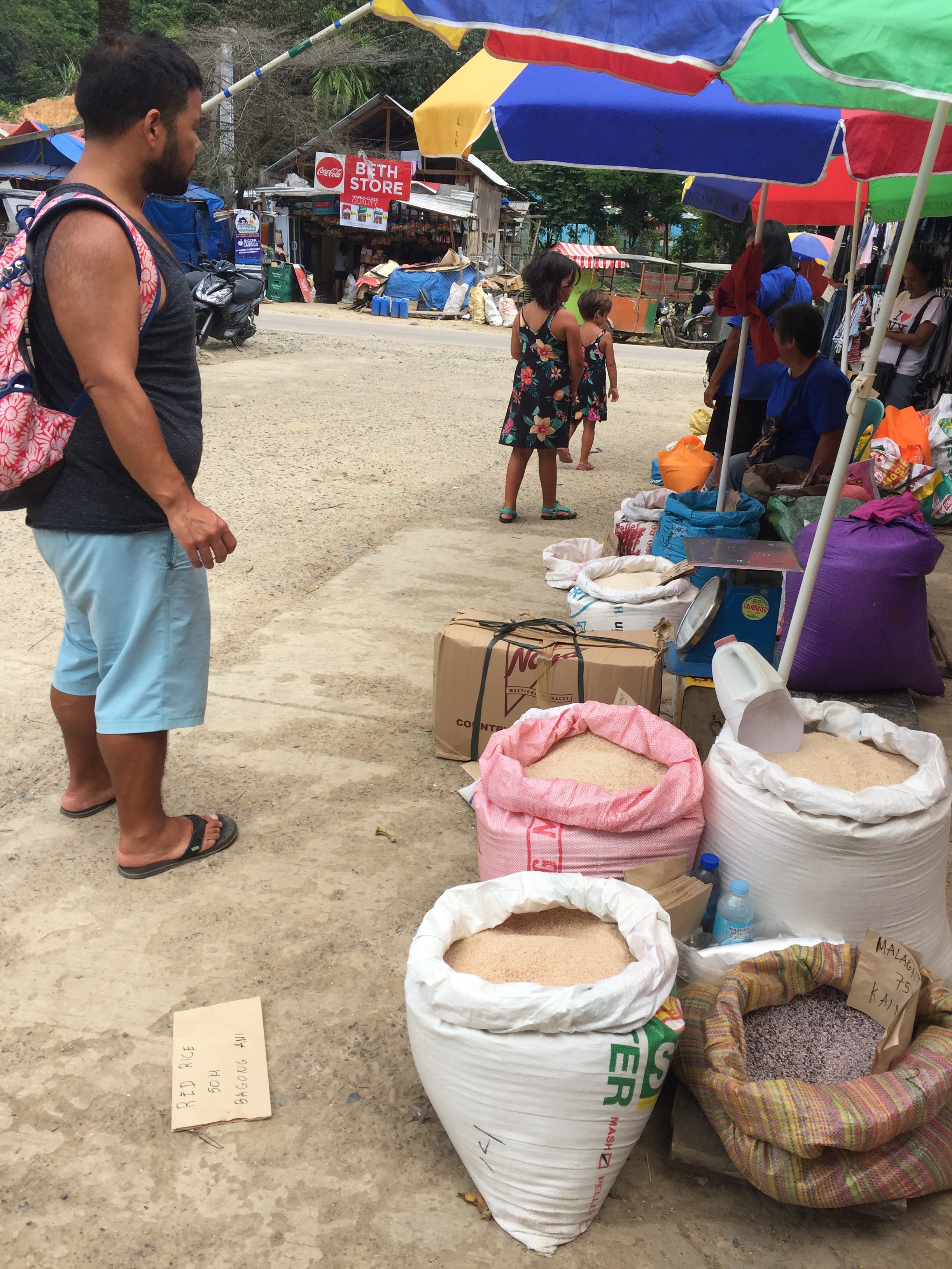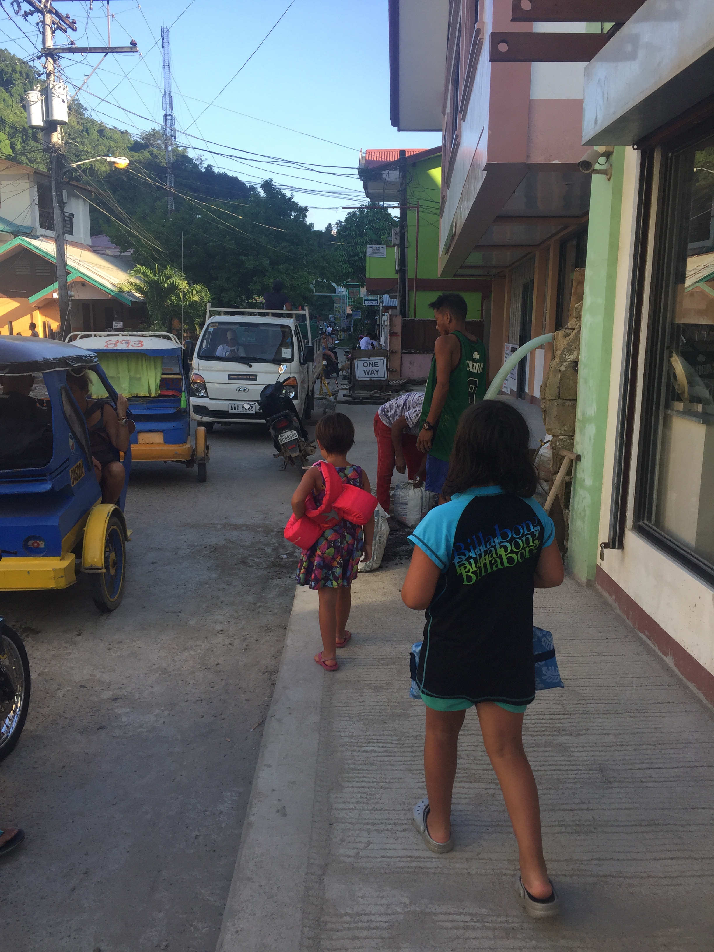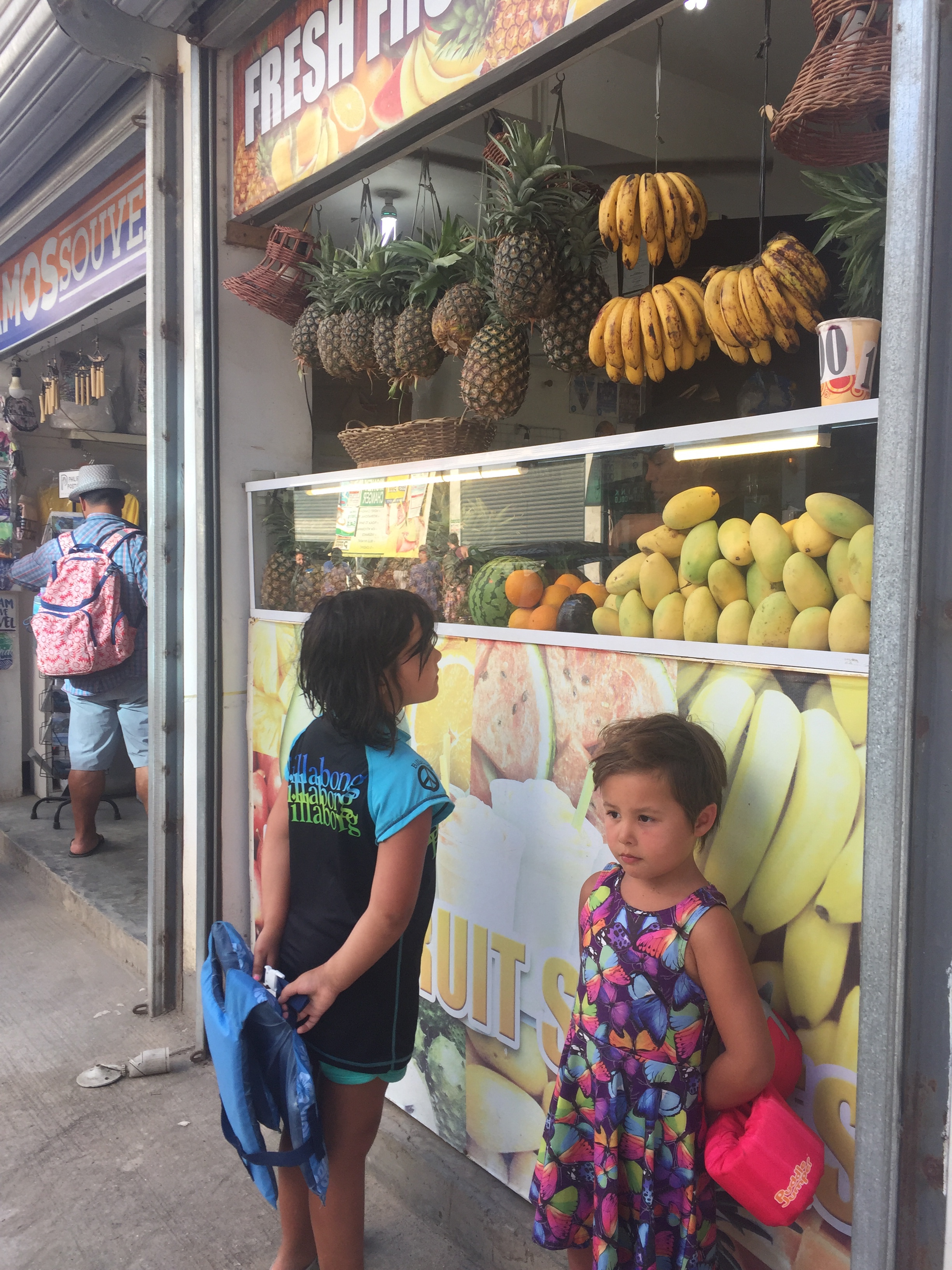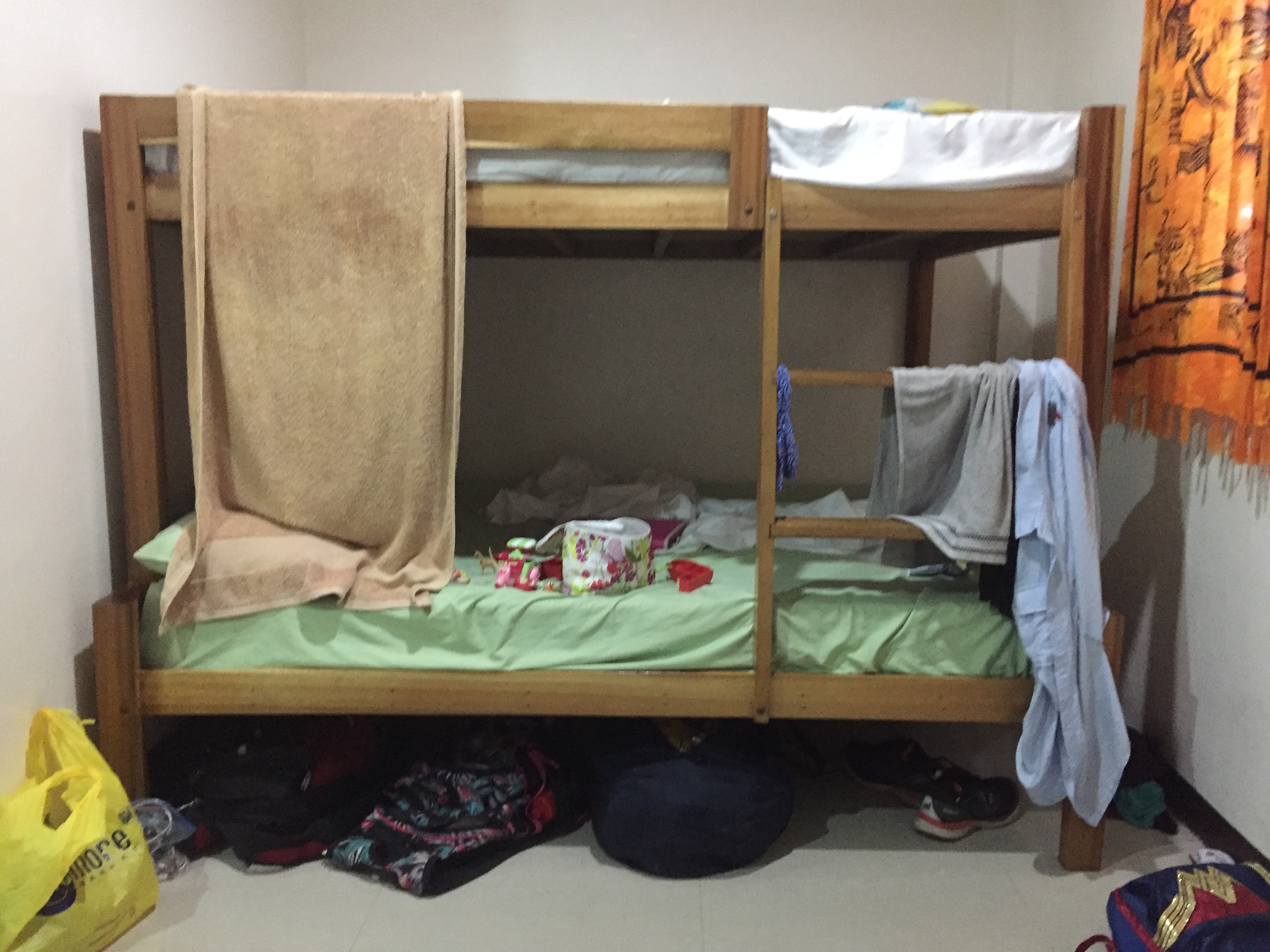 Fresh from the pan fried lumpia and squid balls (a little squid in dough balls) from a roadside standLocal market with the usual fruits and vegetables, fish, meat, live chickens, bambooFilipino breakfast is usually a hit with this crew, but Marion would like her corn beef swapped for eggs please. I think that’s what this face is saying.A little strawberry shortcake anyone? Please…pretty please could someone pop this way, because Mom is real bad at he imaginary play after we’ve baked all of the things and gone for a ride for our picnic. So happy when the girls are contented playing with each other. They’ve been really good together (not without their fights, but overall awesome).Sweet, hot sisters on the way to the beach. Another trike ride. Our boudoir (and living and dining and laundry and play room and parlor and office 😆😁) chad and I fit in the bottom bunk and Alys on top. Thank goodness we instituted the rule that she slept by the wall and Marion had to sleep on the lower twin (from where I’m taking the picture). Because no rail on the top bunk and the fall from the twin to the floor was enough to hurt Marion’s head enough that Mom stayed up from midnight to 4am gently rousing her every 30 minutes to make sure she didn’t have a head injury. That’s how that works right 🙄🤦♀️. Oh heavens the poor girl. She has fallen and hit her head I think 3 times or more already on this trip. Resilient these girls. More market wanderingI am definitely putting more ginger in all of my foods. So good!A long hot day calls for a mango shake. Yum!Marion working in her “secret language” that only SHE can read and speak. “It’s a lot of hard work writing this whole page!”How’s school for our folks back home? We think we’re doing ok, but I really probably need to do a bit more educating of myself on this teaching biz. Good thing we have such bright girls. Just a giant platter of pancit please