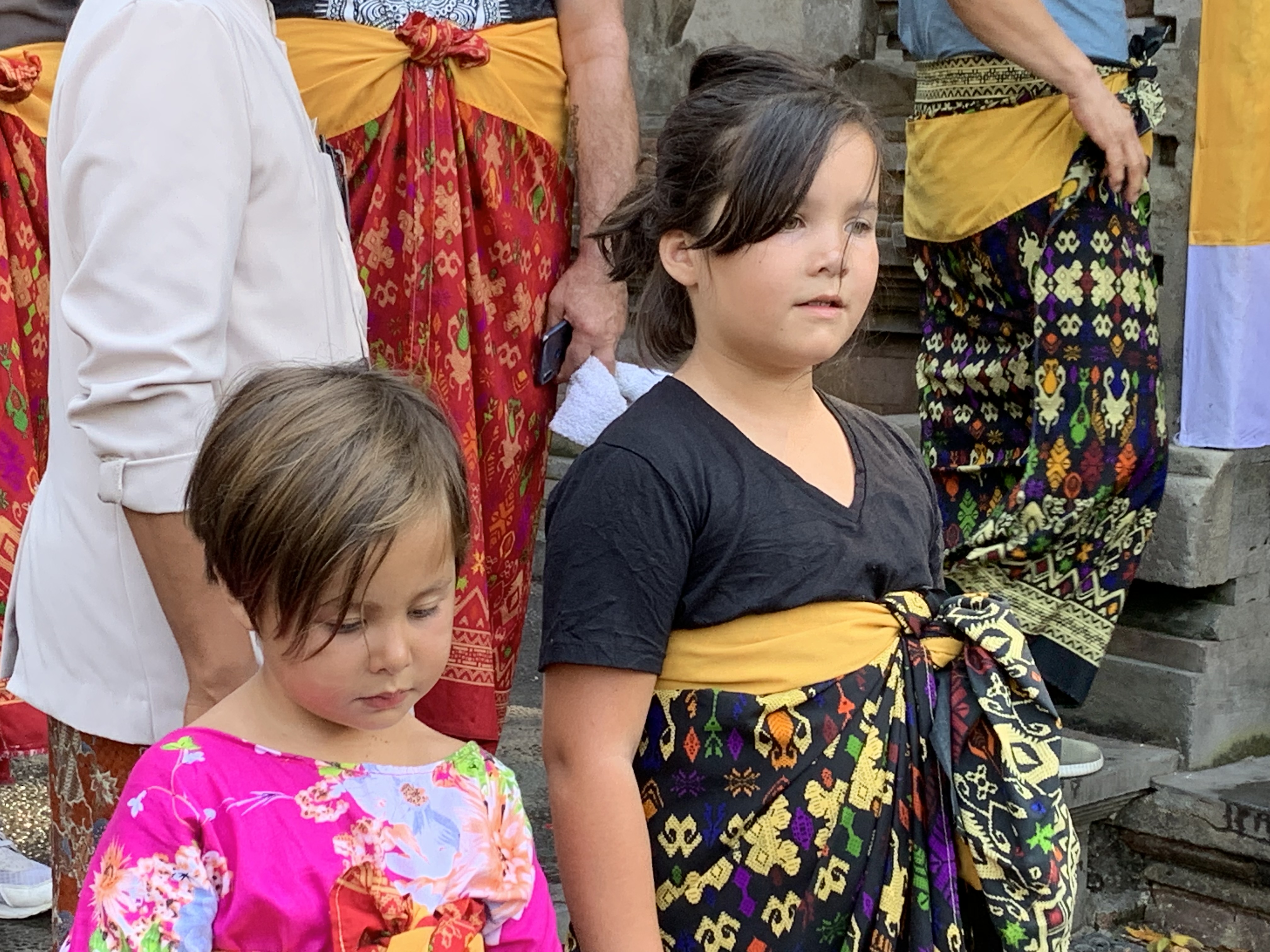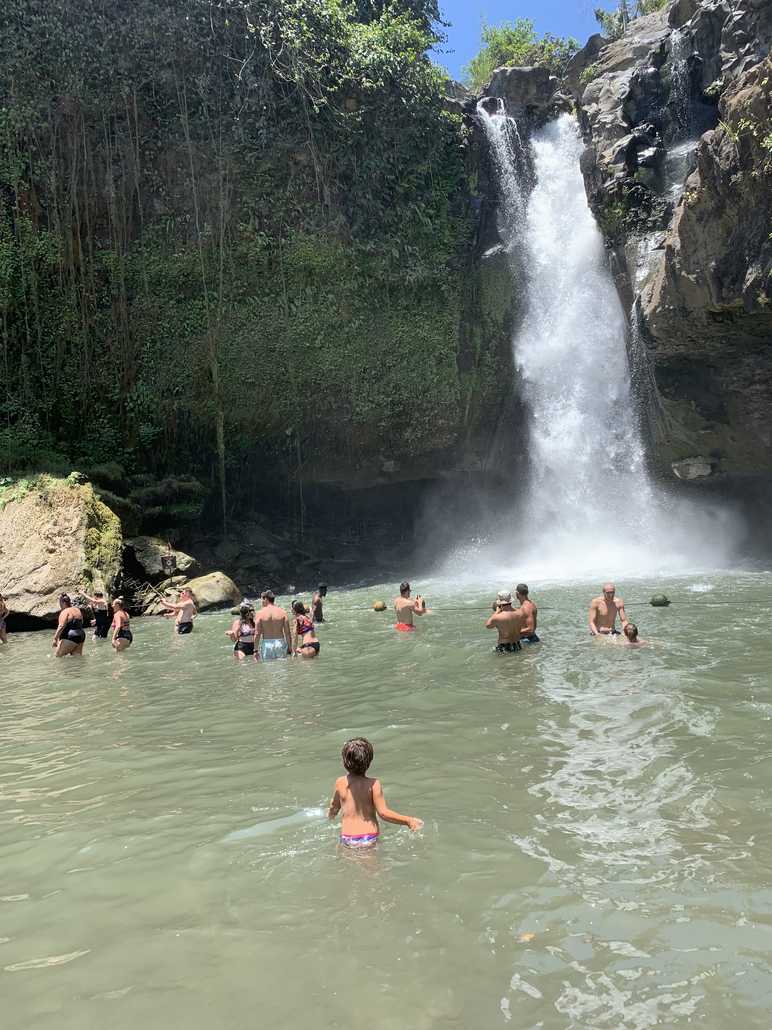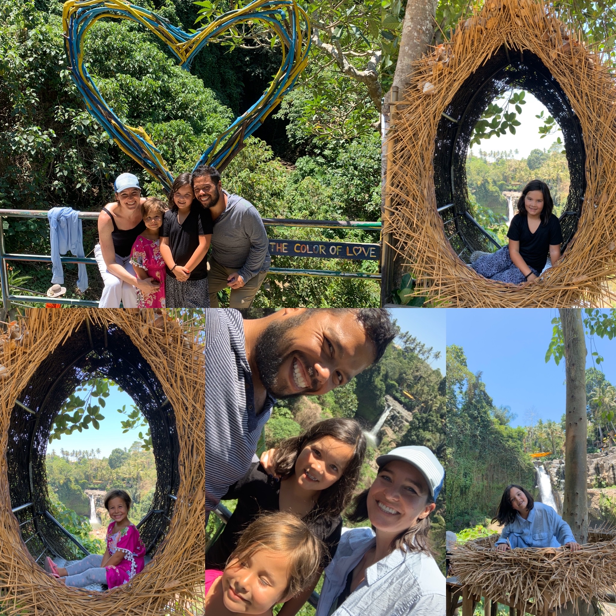 We spoiled ourselves with a tour guide again that took us to all the (ok, many) Tourist haunts. This is always a somewhat conflicting experience for me. 1. I do enjoy the lessons and the major sights of the day. I love learning about history, the religions and everyday practices and perspectives of at least the man who is showing us around. As for the sites, it’s hard to put ones nose up over a beautiful view of a volcano, a rice paddy or waterfall in the jungle. That being said, I really hate the herding of the tourists en masse from one place to another with designated Instagram spots (this is a thing! you can take an ‘instagramable tour’ or do a photo shoot at popular sites). Maybe I hate being a tourist. But I get that’s what we are. And I get that this is 80% of Bali’s economy so how can I begrudge that? I don’t. And perhaps I should be happy we are all herded to the same spots and not destroying all of the them a little but just some of them a lot. And I also get it is supply and demand. They make the Instagram shots and hearts and human sized nests because we take the pictures in them! And post away. Just watch my hypocrisy. I just get so uncomfortable with the constant selling, and the kitsch pushing that you have to decline past the point of polite declining to refusal to ignoring people as if they weren’t people which just feels gross. And I’d be happy to see a waterfall, but really I have plenty at home (though of course I do always take visitors to Multnomah…again with the hypocrisy). So beyond my misgivings it was lovely. Except the metal work and carving stops. The two minute explanation and watching people work before being led into the salesfloor…honestly, it’s just so uncomfortable because I’m not looking to buy anything. We have limited money and more limited space so I just feel super awkward walking around looking at their pretty things that I’d like to just view as a museum but that seems super weird and rude since it’s a store. And I’m worried they work for commission so it’s doubly rude and you’re assigned a person per family that just tails you. Ok, again, BESIDES my whiny awkward and conflicted inner monologing: spoiled silly with a lovely tour being driven around and catered to. I mean we did manage to have some fun don’t you worry. Lucky duckies.