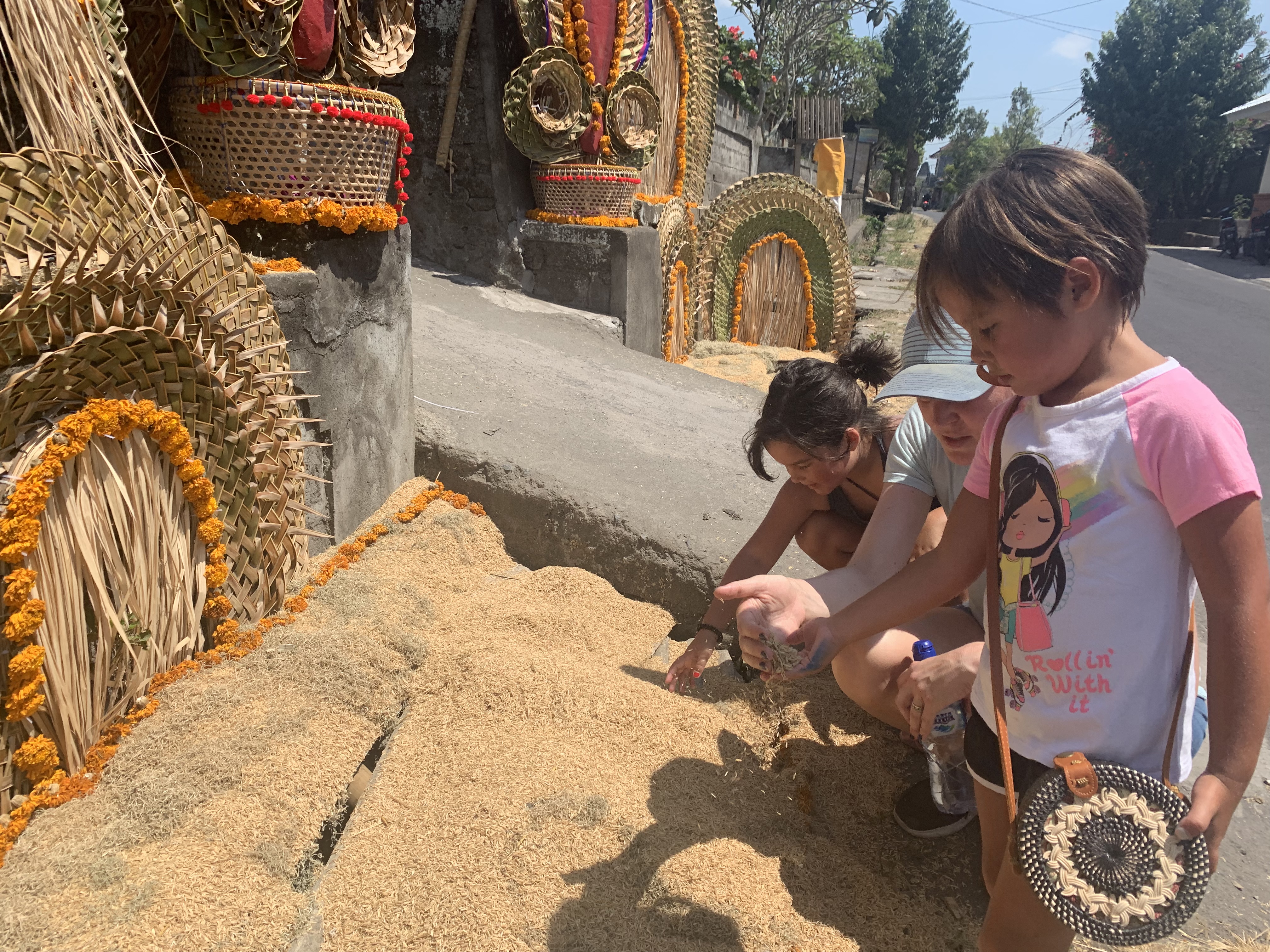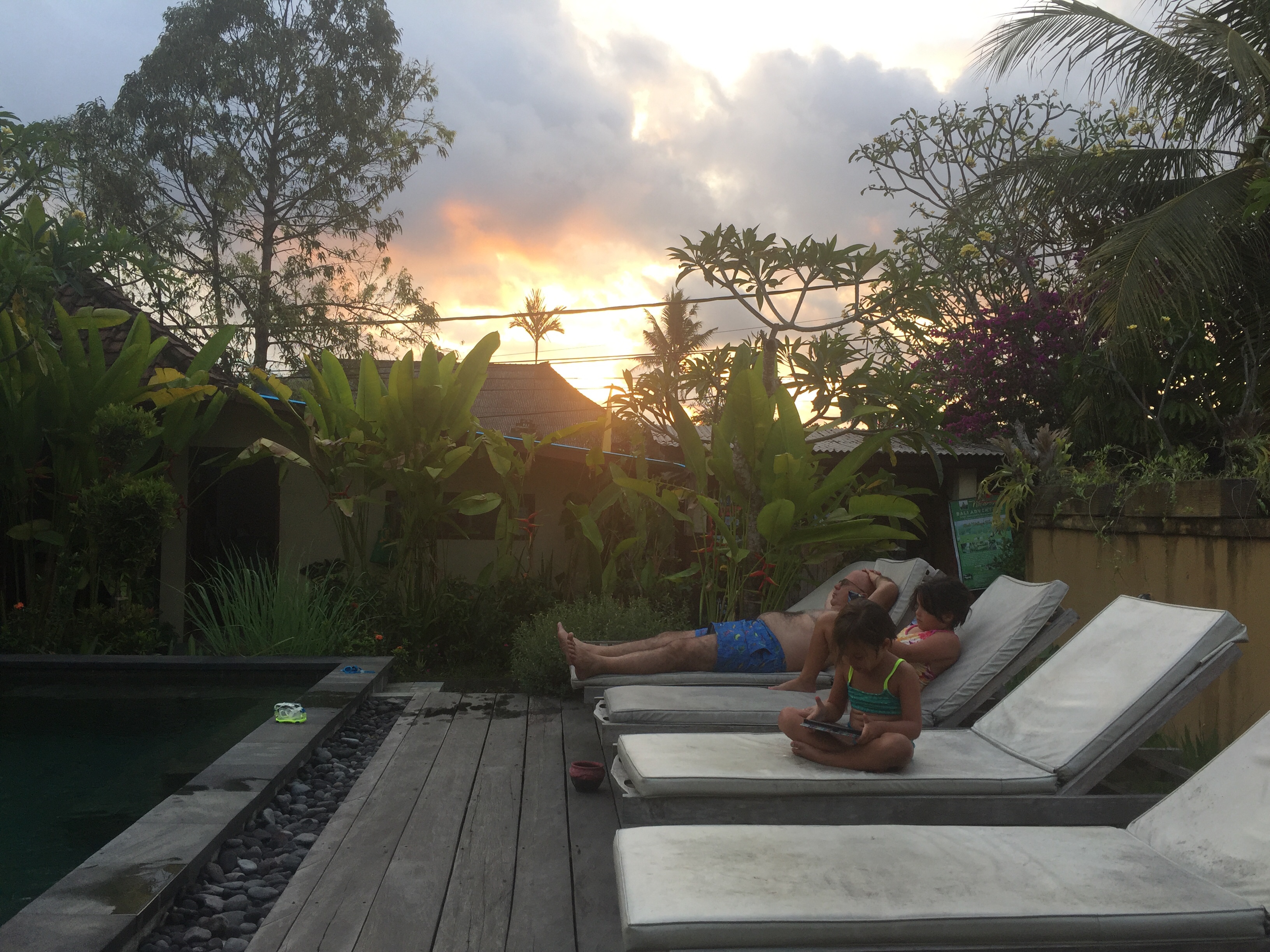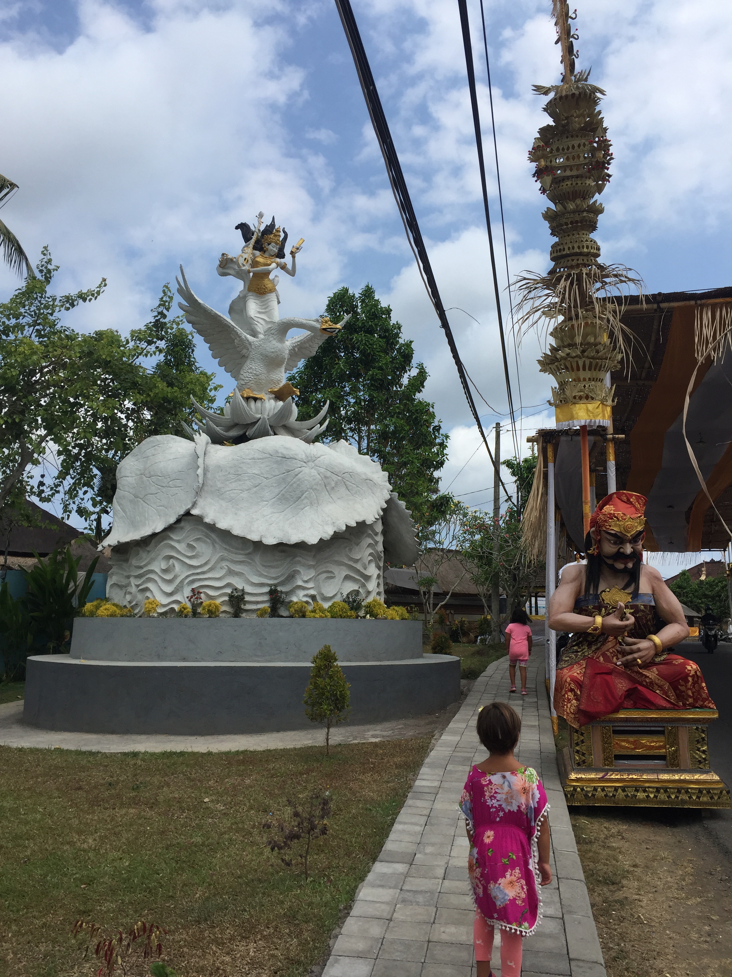 It’s a 3 for 1! We’ve found the best way to limit the spending is to stay at our home stay (not really a hardship with the pool and lovely weather) but despite the loveliness of relaxing we do like to have some type of outing, and so with ambitious spirits and optimism on our side we decided to walk to Ubud market, about 5 miles away. This was after having a full down day at the pool and strolling around our “neighborhood”.