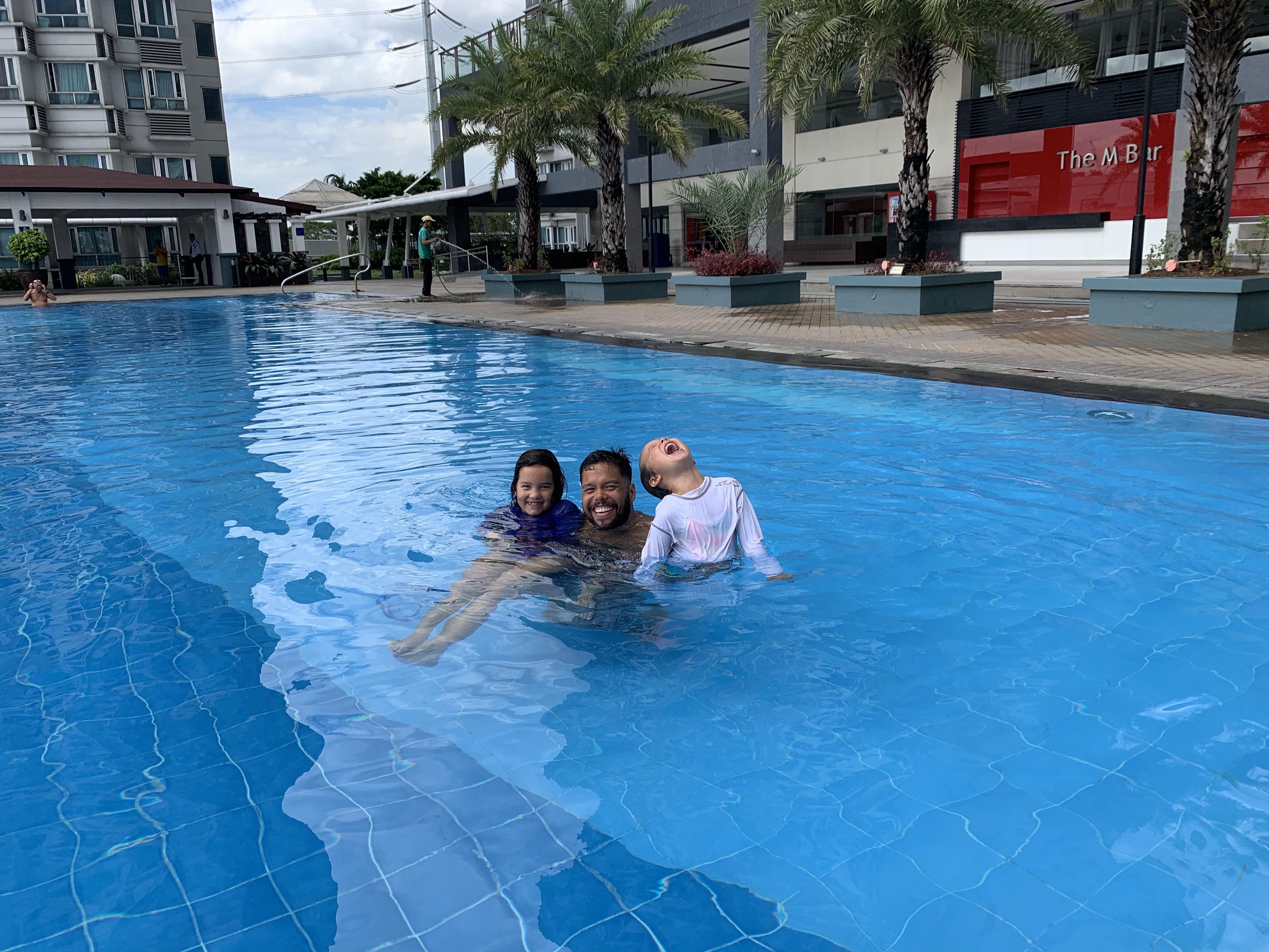 I’ll back up: we are staying in a Lovely apartment building. It is a 38 story complex with 4 towers. Below the complex, on the main level, is a full grocery store, sushi joints, ice cream shops, Starbucks, the coffee Bean, other restaurants and a full grocery store. The 5th floor (we were on the sixth) has a giant courtyard with a beautiful large pool, a green space, a playground, and a jogging path. It is beautiful and quiet and often breezy and fresh. This is all of note because when you step outside on the main floor, out into the sidewalk, it is NONE of these things. You find a sea of concrete, assailed by sewer smells along this one corner (what is with that?! They are so cleanly we saw them mopping the sidewalk! and yet the smell is trailhead toilet city) and our lovely apartment complex is on the corner of a giant intersection that is a cacophony of horns honking, motors rumbling, mufflers, and people selling feather dusters and back supporters. Exhaust is spewing from trucks, cars, motorcycles, scooters and tricycles and coats the concrete surfaces and vehicles and fills your lungs. One big thumbs up I’ll give is to the pedestrian overpassed so we at least don’t have to contend with dodging the traffic!