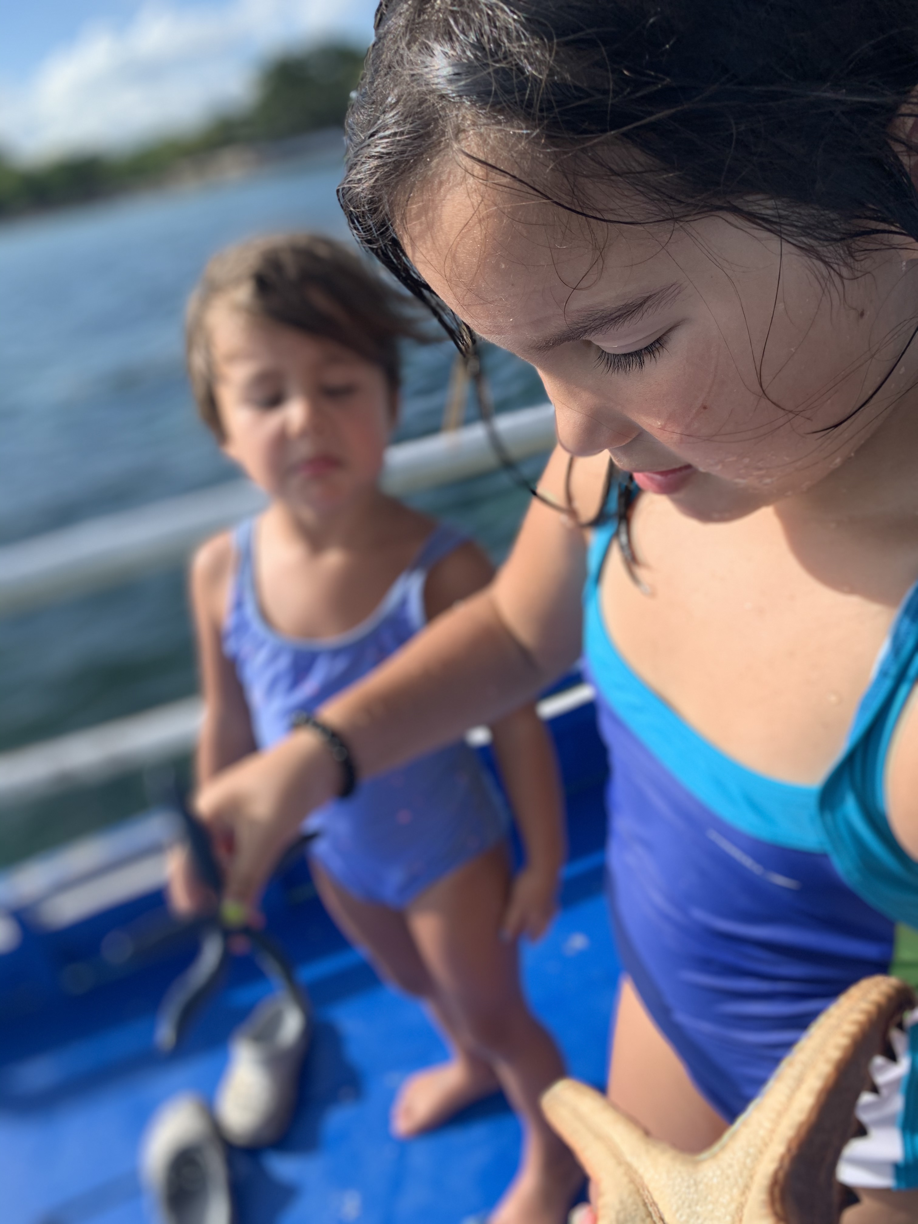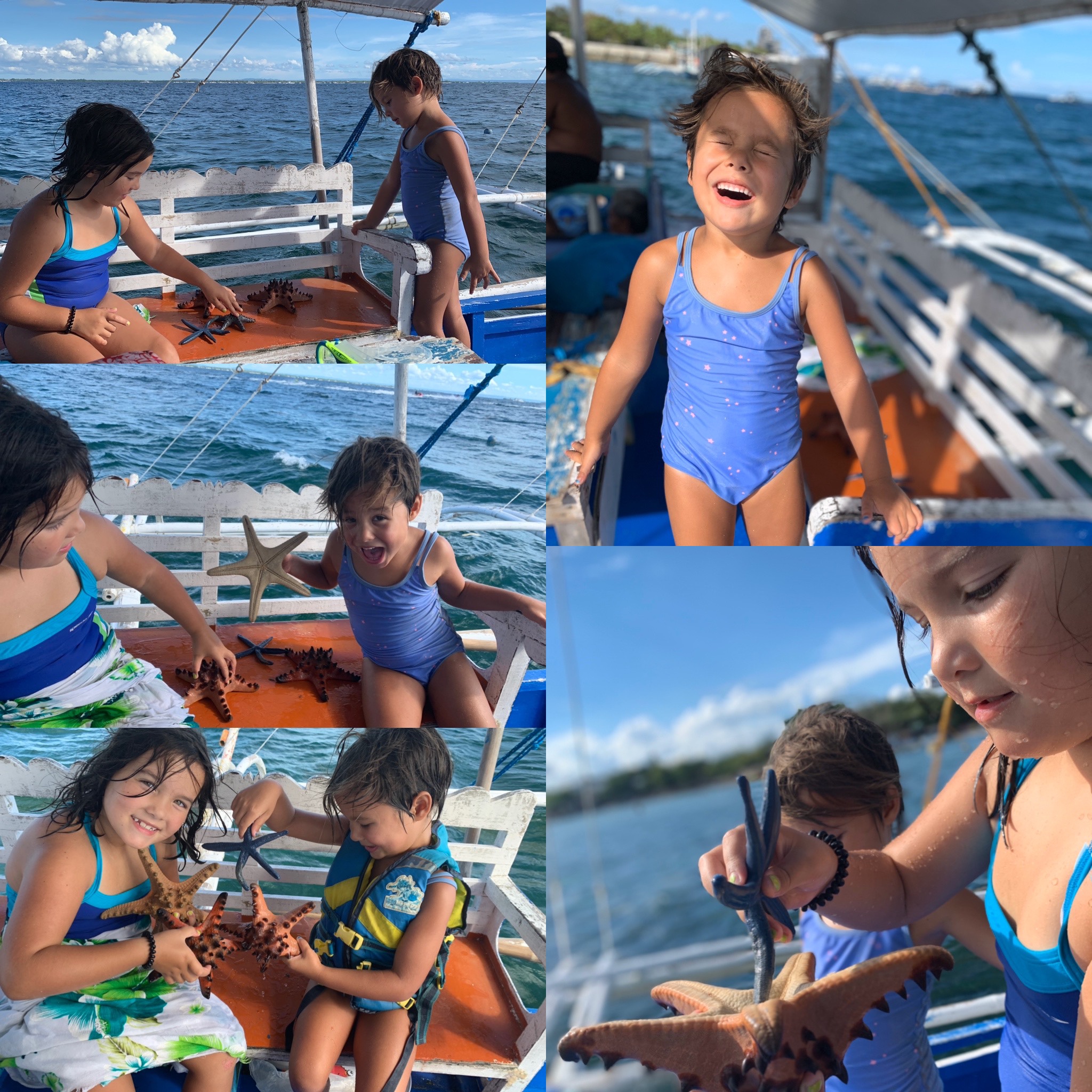 We also took a little boat out to do some snorkeling, just off the shore so it wasn’t spectacular as it’s mostly seagrass instead of coral (we’re told the great coral and diving etc are out around the surrounding islands) but there were some good fish (we had to move to a new area after the first one was in a swarm of jellyfish and Chad, Alys and Marion all got stings…”I got like FIVE stings and I wasnt even in there for even 30 SECONDS!!” -Buoy). The girls didn’t last very long with the snorkeling, though did get to see some of the usual suspects: nemo and anemone, yellow, white and black striped, light bright neon blues. its not too rough hanging on a boat on a sunny afternoon looking at starfish (sea stars actually…mostly horned/chocolate chip…these girls are getting pretty knowledgeable…to go with their smarts and general adorableness).