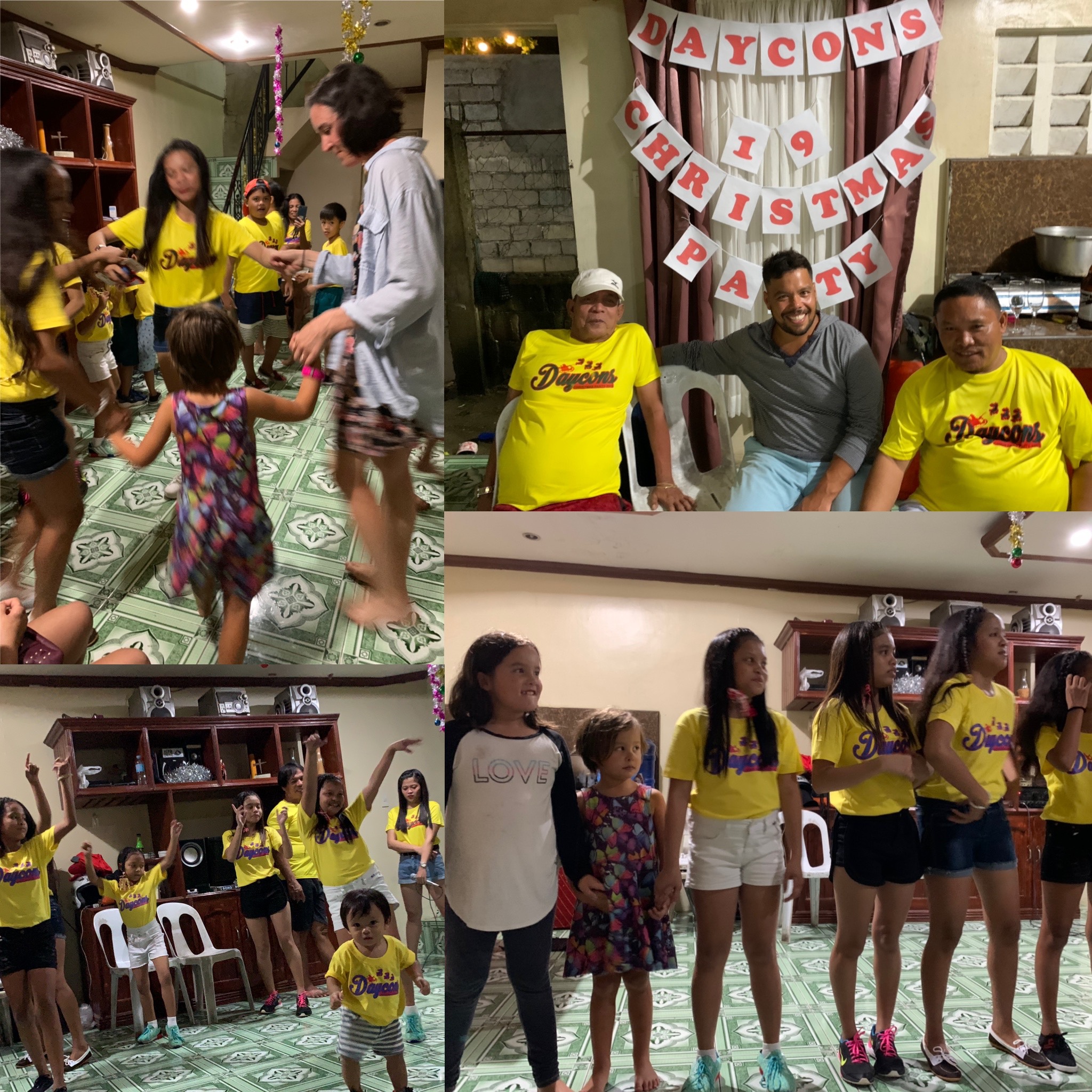 Oh the generosity! We were welcomed into the Daycons (Combination of the family’s last names) Christmas Eve Party. Oh what a party! We were brought to their house across calf deep flooding (so even though it was only a 1/4 mile away we were very grateful for the tricycle chauffeuring). The party was hosted on the first floor of a house that holds 3 to 5 siblings and their families (I was told 5 and chad was told 3, who knows). As you can see it was a whole lot of family crammed in a loud, love filled space with about 15-20 cousins, 10-15 siblings/spouses/aunties&uncles and a few other hangers on like us.